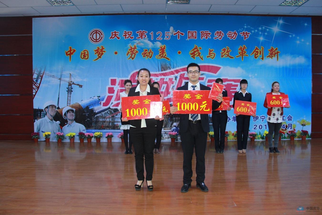 中國慶華新疆消息(馬進)為迎接第125個“五一”國際勞動節(jié),踐行黨的群眾路線,切實開展職工主題教育宣傳活動,4月17日,新疆伊寧縣總工會主辦“中國夢•勞動美•我與改革創(chuàng)新”主題演講比賽,比賽分為民族組與漢族組,各組分別設立一、二、三等獎及優(yōu)秀獎。最終,新疆集團的阿拉法特與王瑤,包攬民、漢兩組一等獎,新疆集團工會聯(lián)合會榮獲“優(yōu)秀組織獎”。