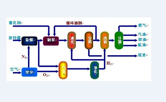 煤加氫液化的過程基本分為三大步驟。